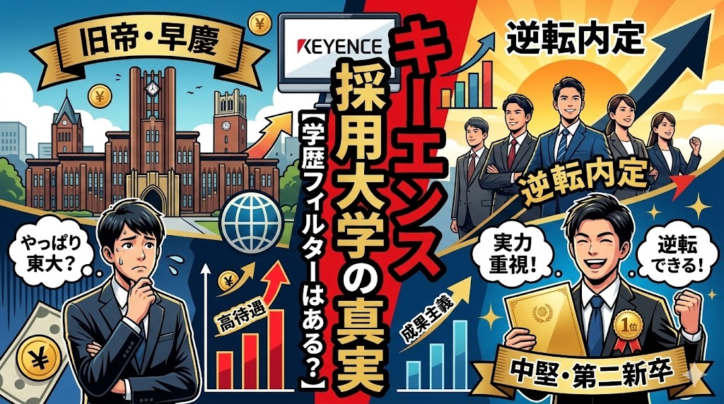 「平均年収2,000万円超え」という圧倒的なパワーワードで、就活・転職市場の頂点に君臨するキーエンス。その報酬の高さゆえに、「東大・京大・早慶レベルじゃないと門前払いされるのでは?」という学歴フィルターへの恐怖が、志望者の足止めをしています。